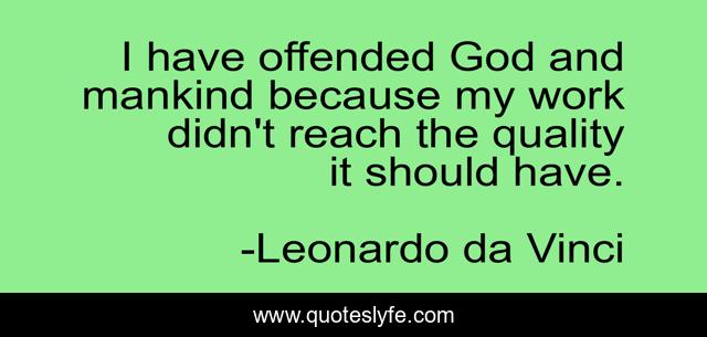 I have offended God and mankind because my work didnt reach the quality it should have. I have offended God and mankind because my work didnt reach the quality it should have. Quote by Leonardo Da Vinci.