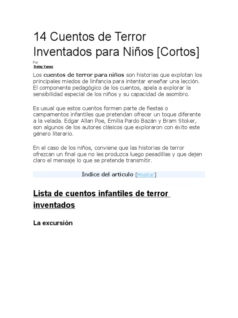 35 CUENTOS DE TERROR CORTOS 2020Muy tenebrosos disfruta de nuestra gran colección de cuentos cortos de terror para gente muy valiente. Haz clic aquí para obtener una respuesta a tu pregunta cuento de terror inventados. 5 academias ubicadas en puntos estratégicos de Guayaquil y.