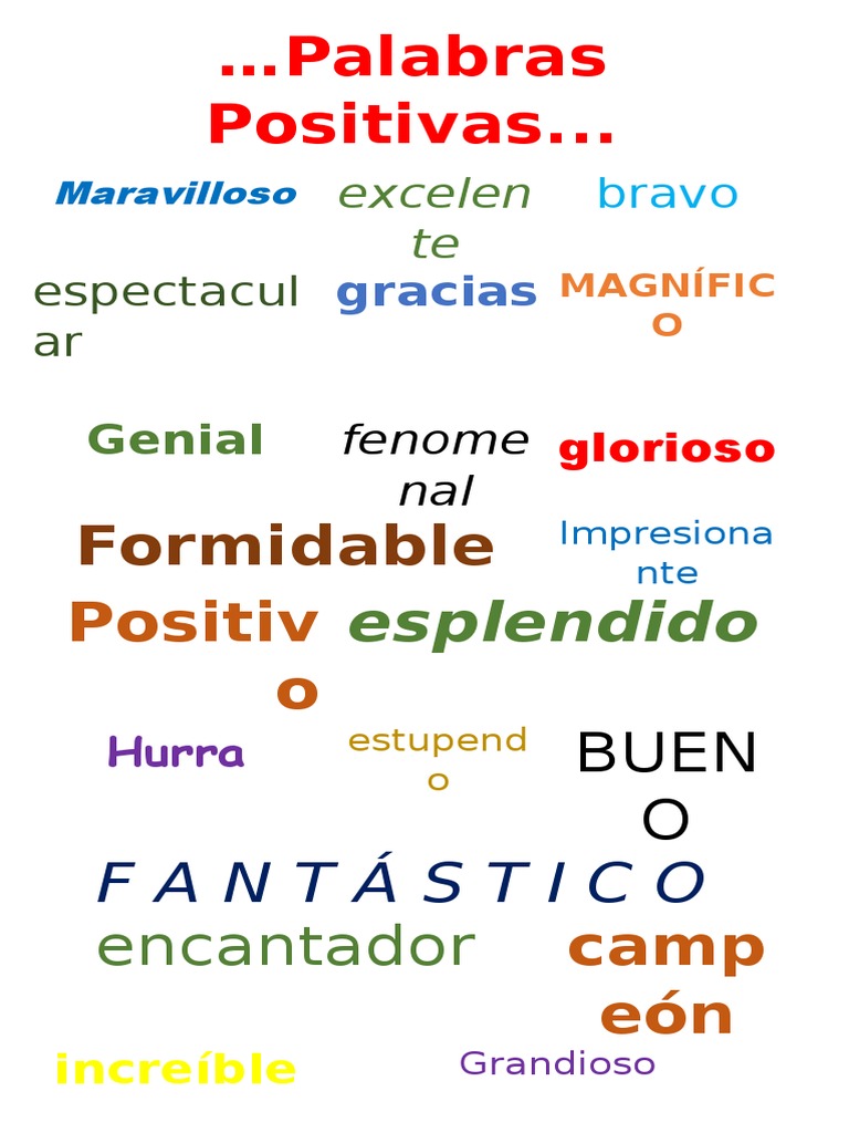 Las palabras positivas como paz y amor pueden alterar la expresión de los genes reforzando zonas de nuestros lóbulos frontales y favoreciendo el funcionamiento cognitivo del. La palabra sí tiene que ser una de las palabras más positivas en inglés que comienzan con la letra Y. Lúdico largo lograr llegar luego lugar limitar y muchas otras en español.