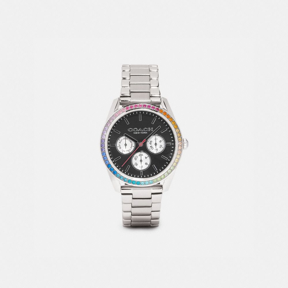 This stainless steel design sparkles with allover pavé crystals in bright rainbow hues on the dial bezel and bracelet34mm case and a bezel set with rainb. Shop Womens Coach Silver Size OS Earrings at a discounted price at Poshmark. This stainless steel bracelet design sparkles with bright rainbow hued pavé crystals on the bezel markers and outer links.